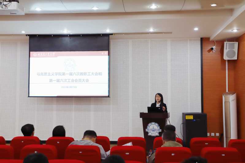学院副院长赵爱伦作学院工作报告。赵爱伦在报告中全面回顾了学院2022年度以来的主要工作,学院深入学习贯彻党的二十大精神,将党的二十大精神及时融入各门思政课,坚持新发展理念,推动学院高质量发展,如期完成省重点马院验收工作,在课程建设、人才培养、专业建设、学科科研工作、师资队伍建设等方面取得了突出的成绩。同时,提出了下一步工作任务,力争不断扎实推动OK138太阳集团高质量、内涵式发展。